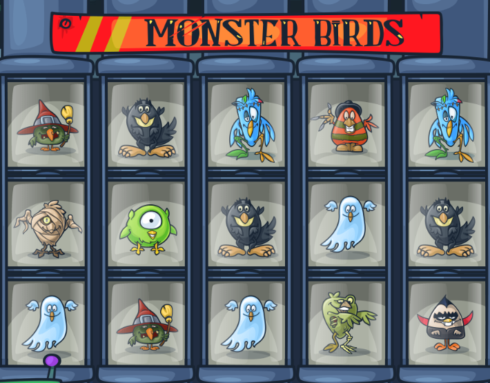 When you play on Monster Birds, then fun will never end. You can meet the birds with the main characters from the Horror movie. The free slot machine has feathered funny monsters on its 3 rows, 25 paylines and 5 reels. The gaming slot will try snatching the prize from the claws of the Kruger Birds, Mummy birds, Zombie Birds and Werebirds. You can match 3 even more identical scary birds at the pay lines of a monster birds gaming slot in order to get a prize. You will have to align the monsters starting from left towards the right line. There are two special monstrous birds that make the game to be fascinating when you get them. Dracula bird is an undead bloodsucking bird which will help you to get the winning combination. It will replace other birds except Cyclop Bird.