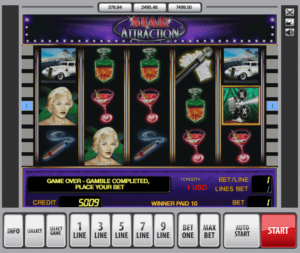 This is also a free slot game with stylish 5 reels along with 3 rows; a set of adjustable pay lines are also there. You can choose the number of activated pay lines before each spin from a range of 1 to 9. The bet per line is also an adjustable option in this game. It has a range from 1 credit to 100 credits. You can change the line bet amount before each spin. According to these settings, the total bet varies from 1 credit to 900 credits for each spin.